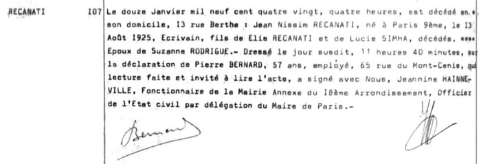 Jean Nissim Recanati Death Record 1980-01-12