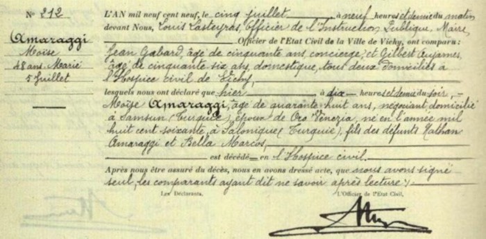 1909-07-05 Moise Amaraggi Death Record